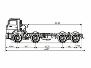 Шасси 6*6, длина рамы 4 680 - 5 200 мм, грузоподъемность 8,6 тонн